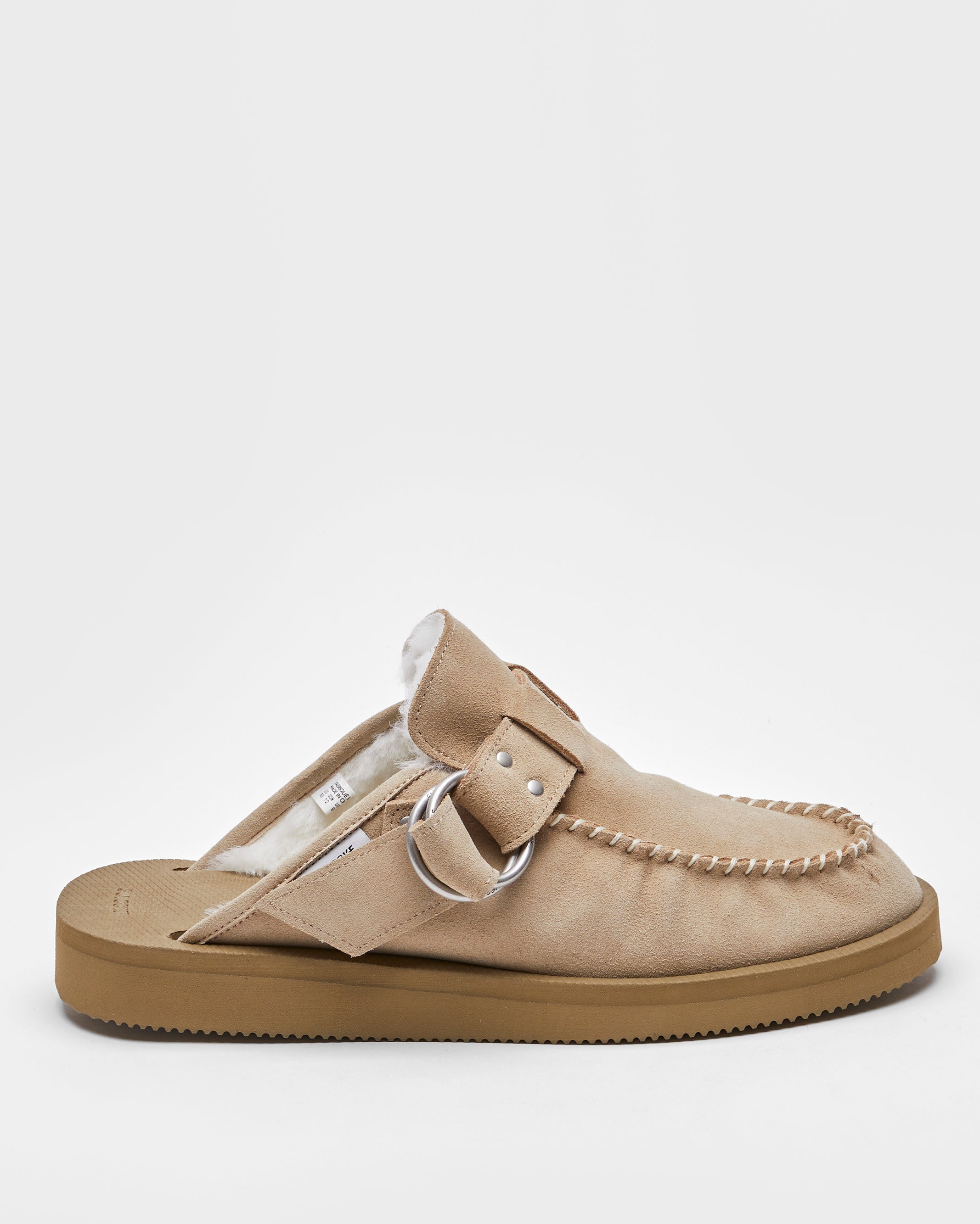 Constructed with a premium suede upper, as well as our original antibacterial footbed and outsole, the silhouette is finished with a buckled strap and SUICOKE branded jacquard label.