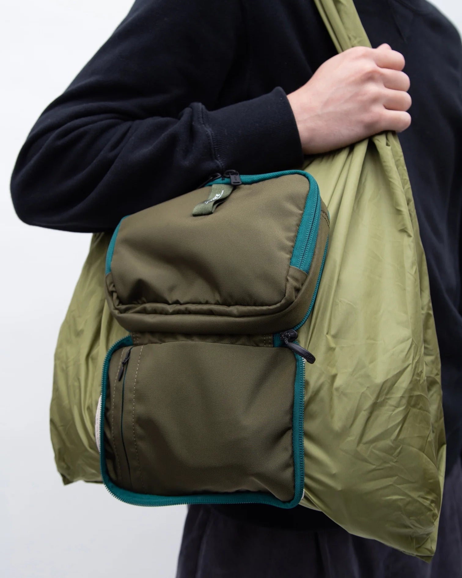 66ナイロンタフタを主素材とした、SUIOCKEオリジナルの2WAYスタイルバッグ。ジップポーチにトート型エコバッグが一体化した構造。